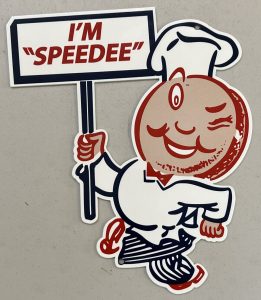 چندتا صندلی و سظل آشغال هم بیرون مغازه میذارن که مردم اگه خواستن بشینن و باقی مانده غذا و پاکتشو هم بندازن دور. یه لوگو هم درست میکنن برای رستورانشون. یه مرد چاق که سرش همبرگر بود با کلاه سرآشپز و اسمشم میذارن اسپیدی که نشون بده خیلی سریعن.